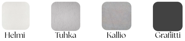 Lähes kaikki NCS-, RAL-, Tikkurila- ja Teknos -värijärjestelmien sävyt ovat saatavilla lisähinnasta – olipa toiveesi lämmin hiekan sävy, rohkea terrakotta tai vaikkapa metsänvihreä, toteutamme sen. Näin saat pinnoitteesta juuri sinun tyyliisi ja tilasi tunnelmaan sopivan.